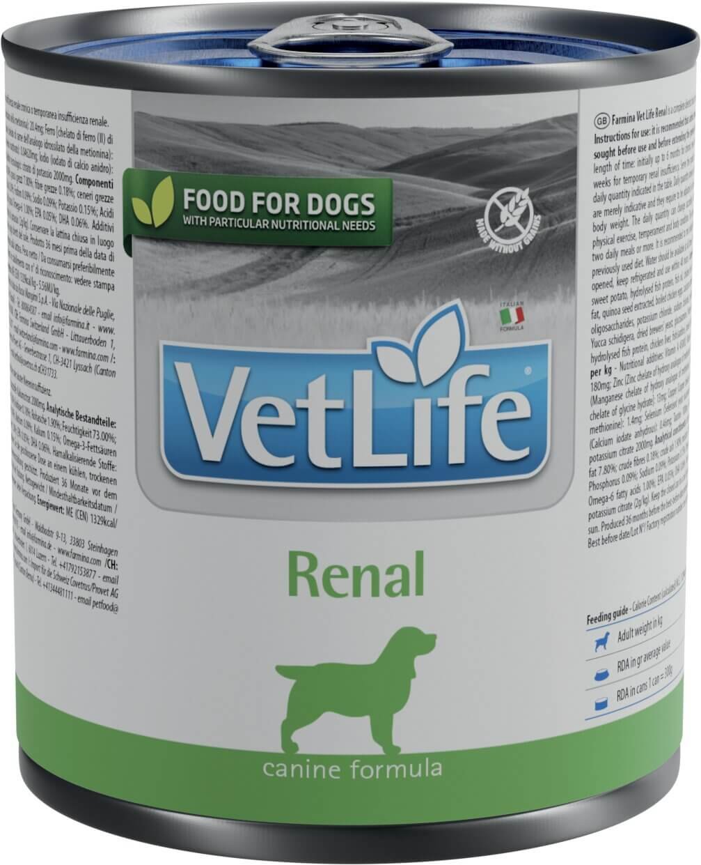 Farmina Vet Life Renal е комплетна диететска храна за кучиња, препорачана за поддршка на бубрежната функција во случај на хронична или привремена бубрежна инсуфициенција.